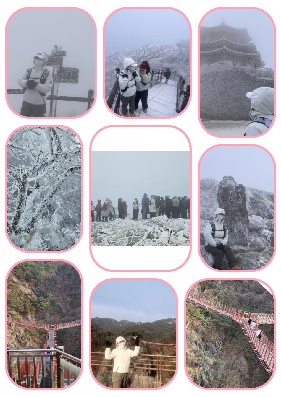 향적봉으로 향하는 길은 말 그대로 순백의 눈꽃 터널이었다. 어느 곳과도 비교할 수 없을 만큼 아름다운 설경이 펼쳐졌고, 처음 마주한 풍경이라 더욱 오래도록 기억에 남을 하루가 되었다. 함께한 딸아이에게도 분명 잊지 못할 추억으로 남았을 것이다. 이어 두 번째로 방문한 곳은 거창 Y자 출렁다리였다. 이곳 역시 경치가 정말 예술이었고, 여행의 마무리를 더욱 인상 깊게 만들어주었다. 힐링했으니 한동안 열심히 영차영차~~~^^ |