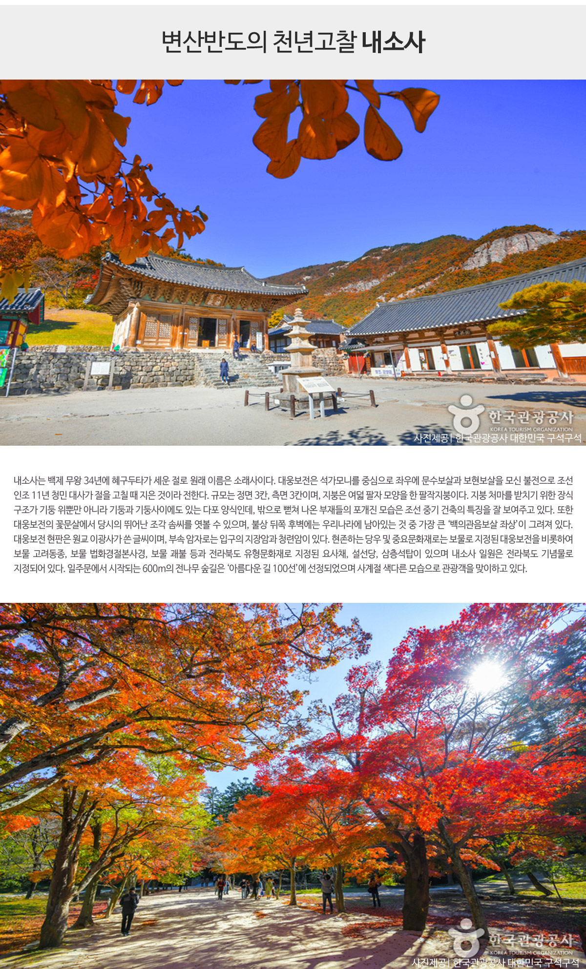 - 산세와 단풍이 유난히 아름다운 내소사