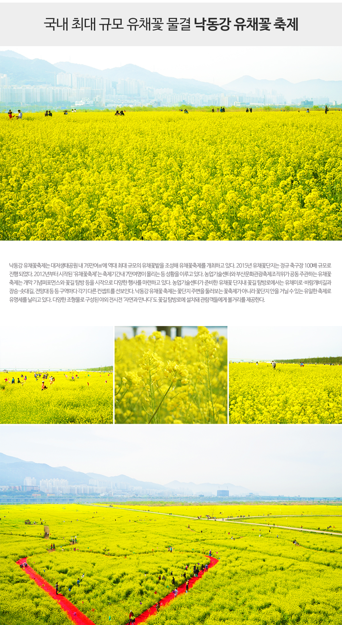 - 낙동강변에 펼쳐진 황금색 유채꽃 세상에 흠뻑 빠져보세요.