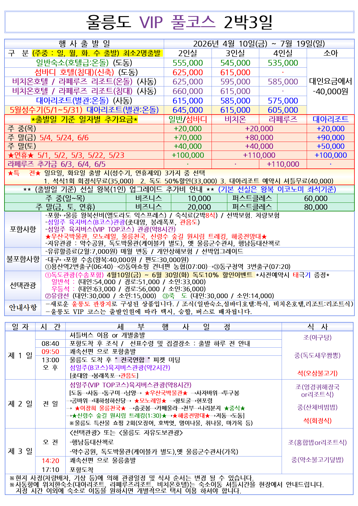 [매일출발] 울릉도&독도 vip 풀코스 쾌속선 2박3일