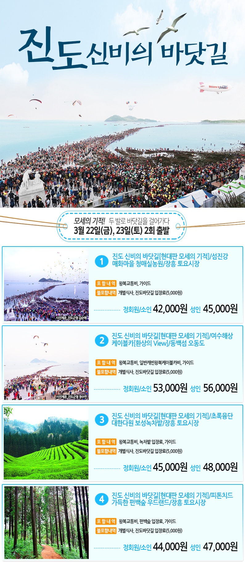 제목 진도 신비의 바닷길이 열리다!! ★3월 22일(금요일), 23일(토요일) 단 2회 출발★ 등록일 19.02.15 조회 2,445