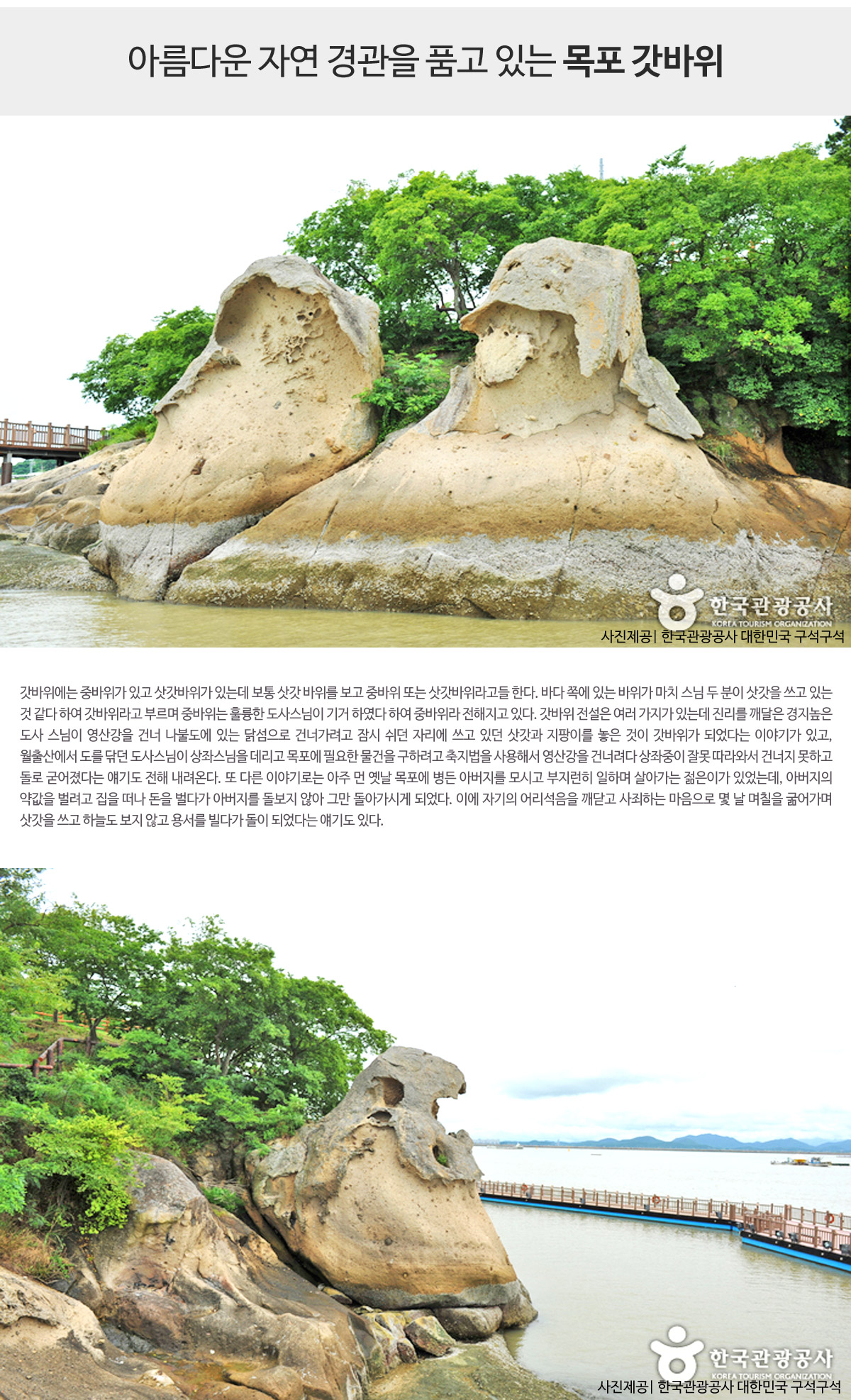 - 바다위 보행교를 걸으며 목포의 관광 보물 갓바위를 둘러보세요.