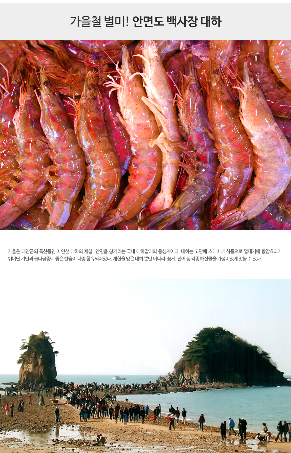 - 전국 최대의 자연산 대하 집산지로 유명한 안면도