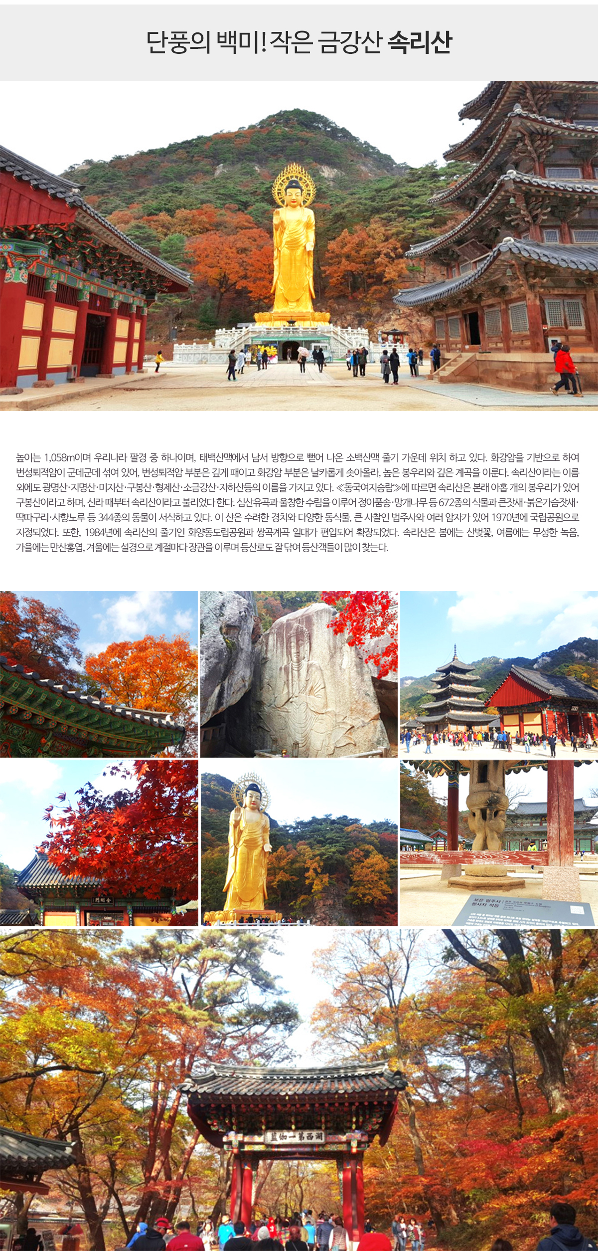 - 높이 1,508m의 우리나라 팔경 중 하나!가을 만산홍엽으로 많은 관광객들이 찾는 곳!